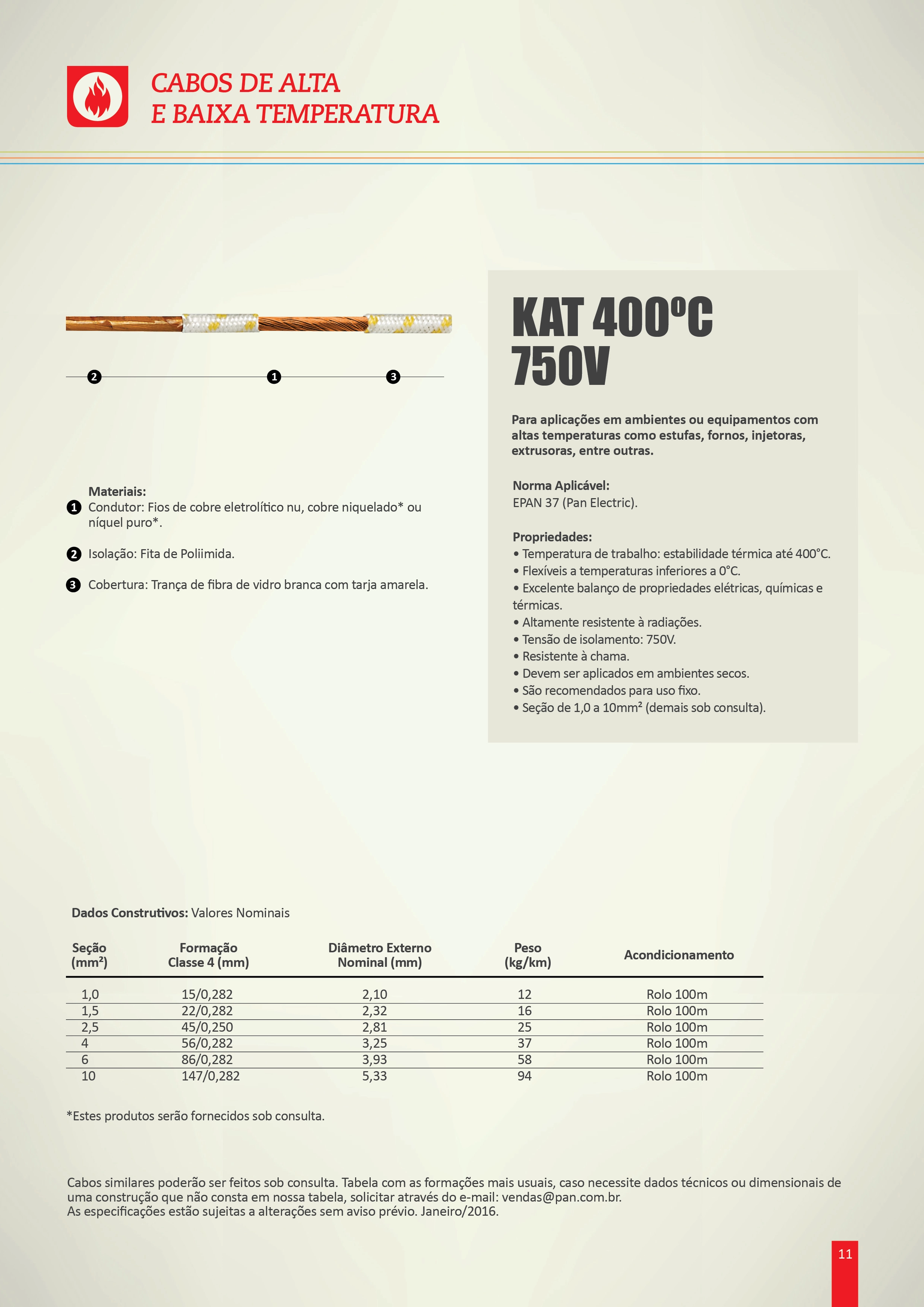 - Condutor: Fios de cobre eletrolitico nu,cobre niquelado* ou níquel puro*, encordoamento classe 4.